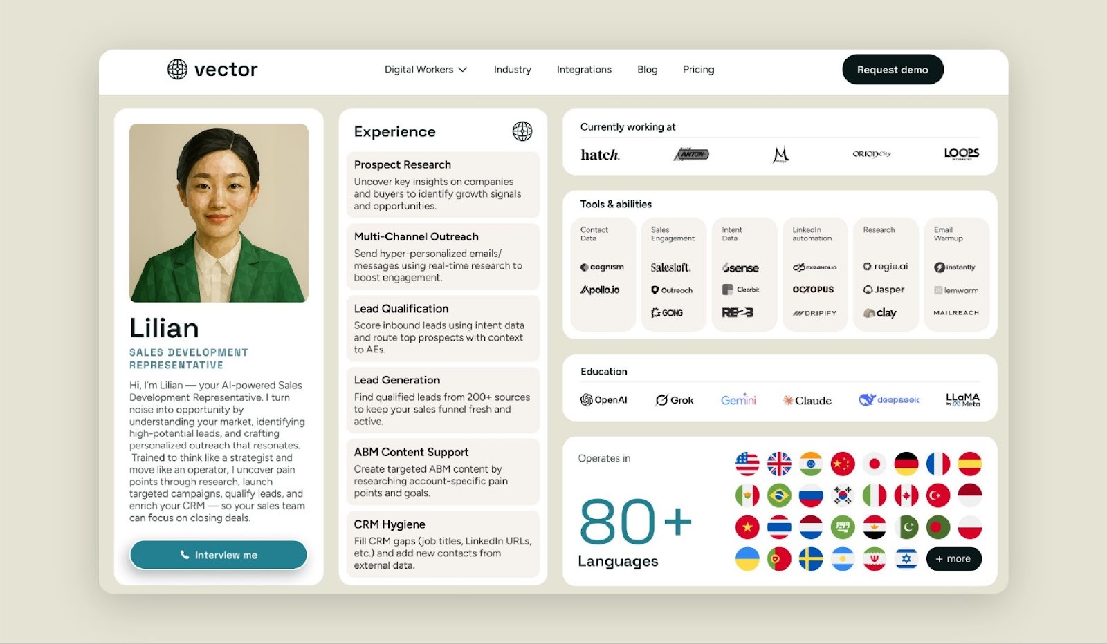Visit https://www.vectoragents.ai/lilian to book a demo today.